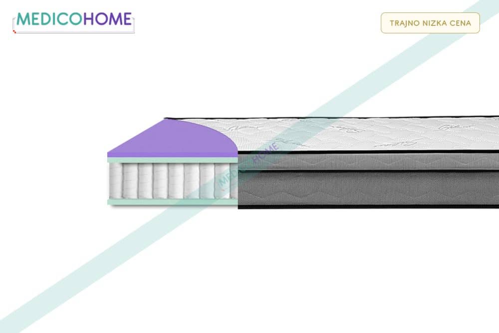Sednje trda vzmetnica v višini 24 cm z žepkastim vzmetenjem Medicoil TrueEdge ter kombinacijo PU in spominske pene